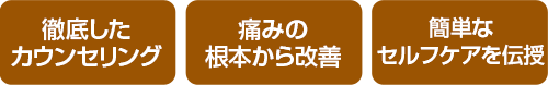 もちろん一回の施術で完全に痛みを取る事ができないかもしれません。しかし、痛みが悪くなることは絶対にありません。何度か通院していただくことで、必ず改善結果を実感できます。