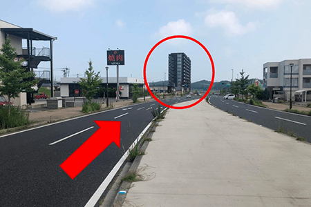 1学園西大通りを牛久方面に向かって南下し、Fit24とAOKIがある交差点を左折