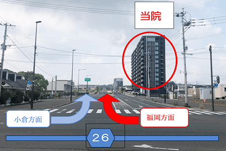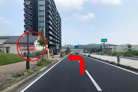 2当院を超えてから、1つ目の焼肉屋の信号を右折