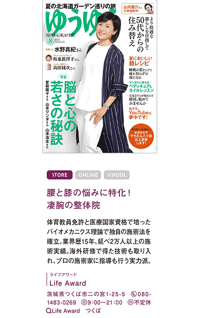 全国発行雑誌「ゆうゆう」の特集脊柱管狭窄症を改善する!